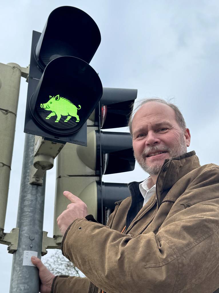 Die Ebermännchen 🐗 geben ab sofort in Ebersdorf das Signal, ob man die Straße überqueren kann oder noch warten sollte.