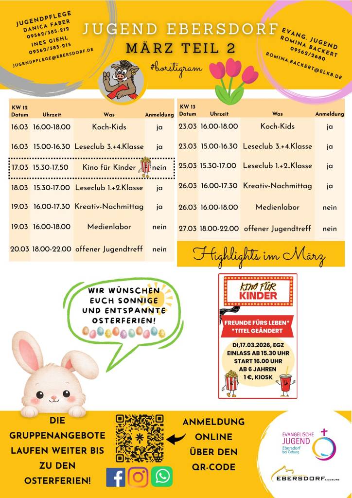 Heute haben wir unser Ferienprogramm für die Osterferien 2026 für euch im Gepäck.