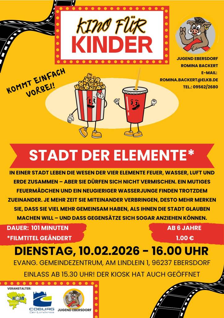 Außerdem wartet am Dienstag, den 10.02., das vorletzte Kino für Kinder auf euch! Weitere Info's dazu folgen kommende Woche!