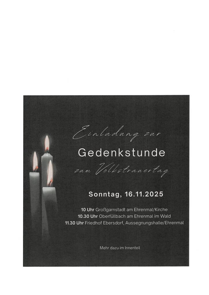 Am Sonntag, den 16.11.2025 ist der Tag der Erinnerung, der Tag des Gedenkens, der Tag der Mahnung zum Frieden.