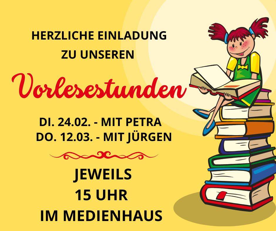 Herzliche Einladung zu den nächsten Vorlesestunden ins Medienhaus - in....