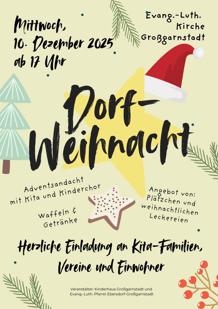 Es ergeht wieder herzliche Einladung zum nächsten Adventssingen in der St. Laurentius Kirche in Ebersdorf - am Dienstag, 9.12., ab 19 Uhr.
