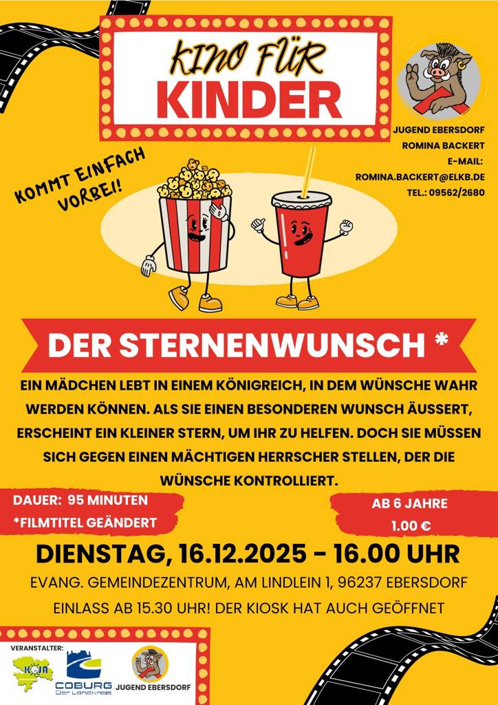 Kommt am Dienstag, den 16. Dezember, im EGZ vorbei und seid bei dem Film "Der Sternenwunsch" dabei (Filmtitel geändert).