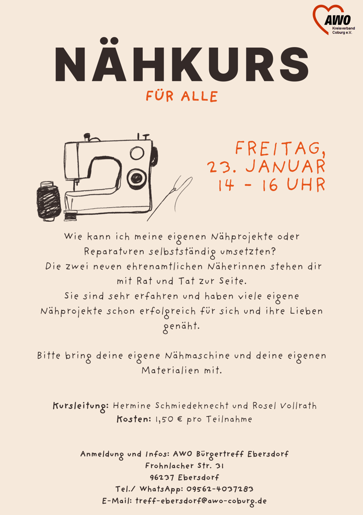 Anmeldungen bitte bei Nadine Jacob (Tel./WhatsApp: 09562-4037283, treff-ebersdorf@awo-coburg.de).