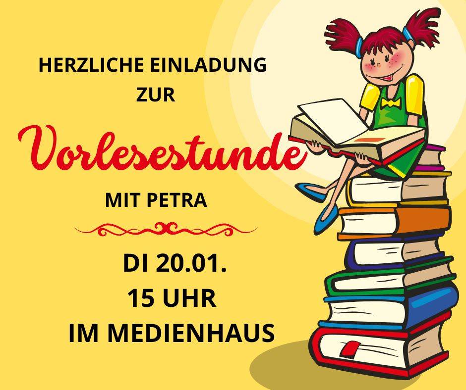 Schon jetzt vormerken und einen dicken Knoten in`s Taschentuch machen - am Dienstag, 16.12. - um 15 Uhr - ist wieder Vorlesezeit mit Petra im Medienhaus - in "Deiner Bücherei, am Frohnberg zwei!"